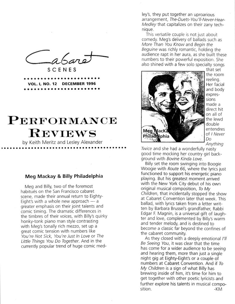 Home / Press / Meg and Billy / Cabaret Scenes, December 1996 (Meg & Billy)