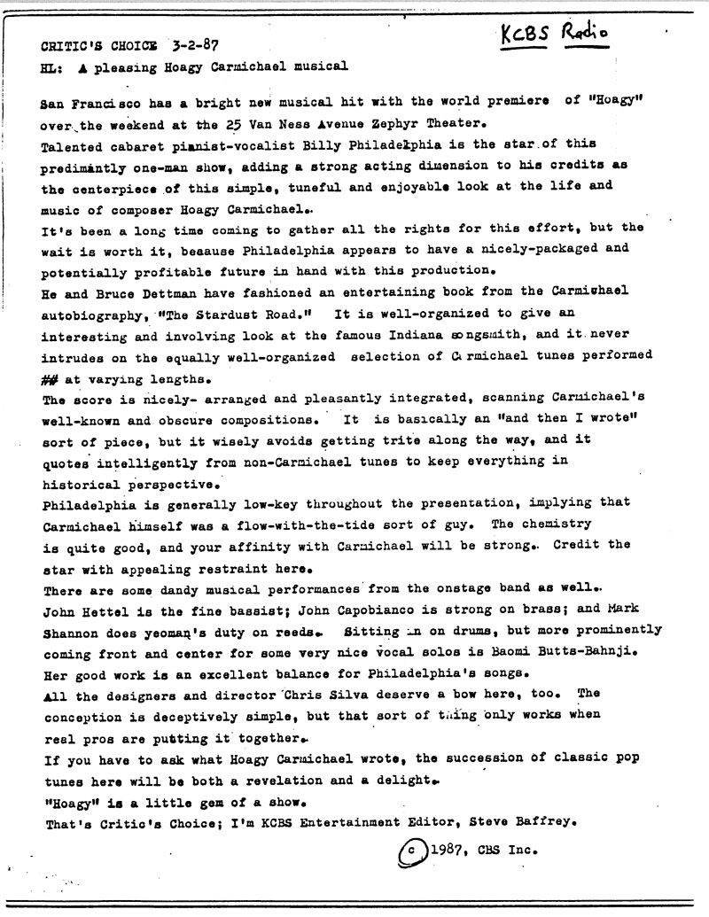 Home / Press / KCBS Radio, March 1987 (Hoagy)