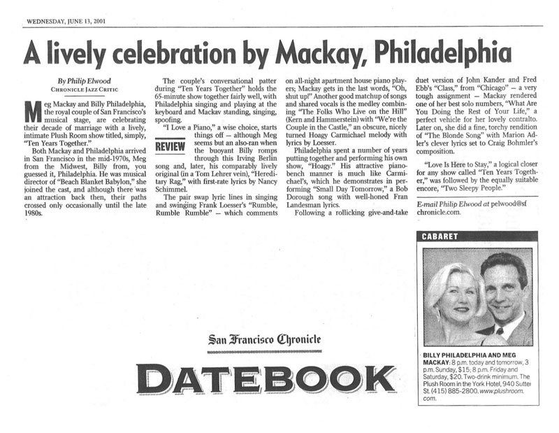 Home / Press / Meg and Billy / San Francisco Chronicle, June 2001 (Meg & Billy)